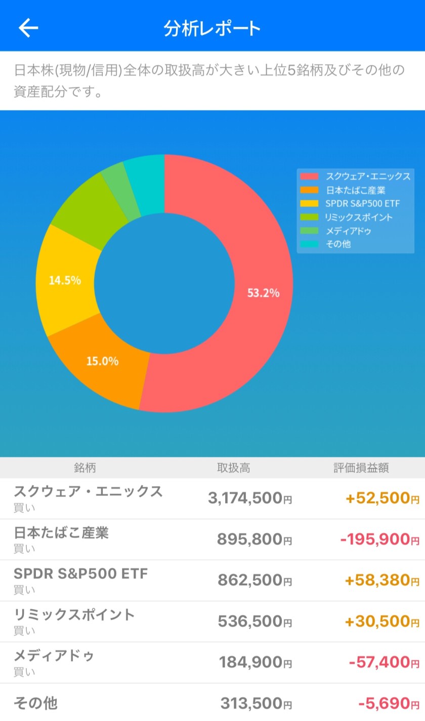 6回の売買を行いました。短期でそーせいと凸版印刷を売買できたのは悪くなかったです。ソフトバンクを短期での反発に期待して購入しましたが、大きく下げてしまいました。時間がかからず反発すると未だに信じていますので持ち越しています。